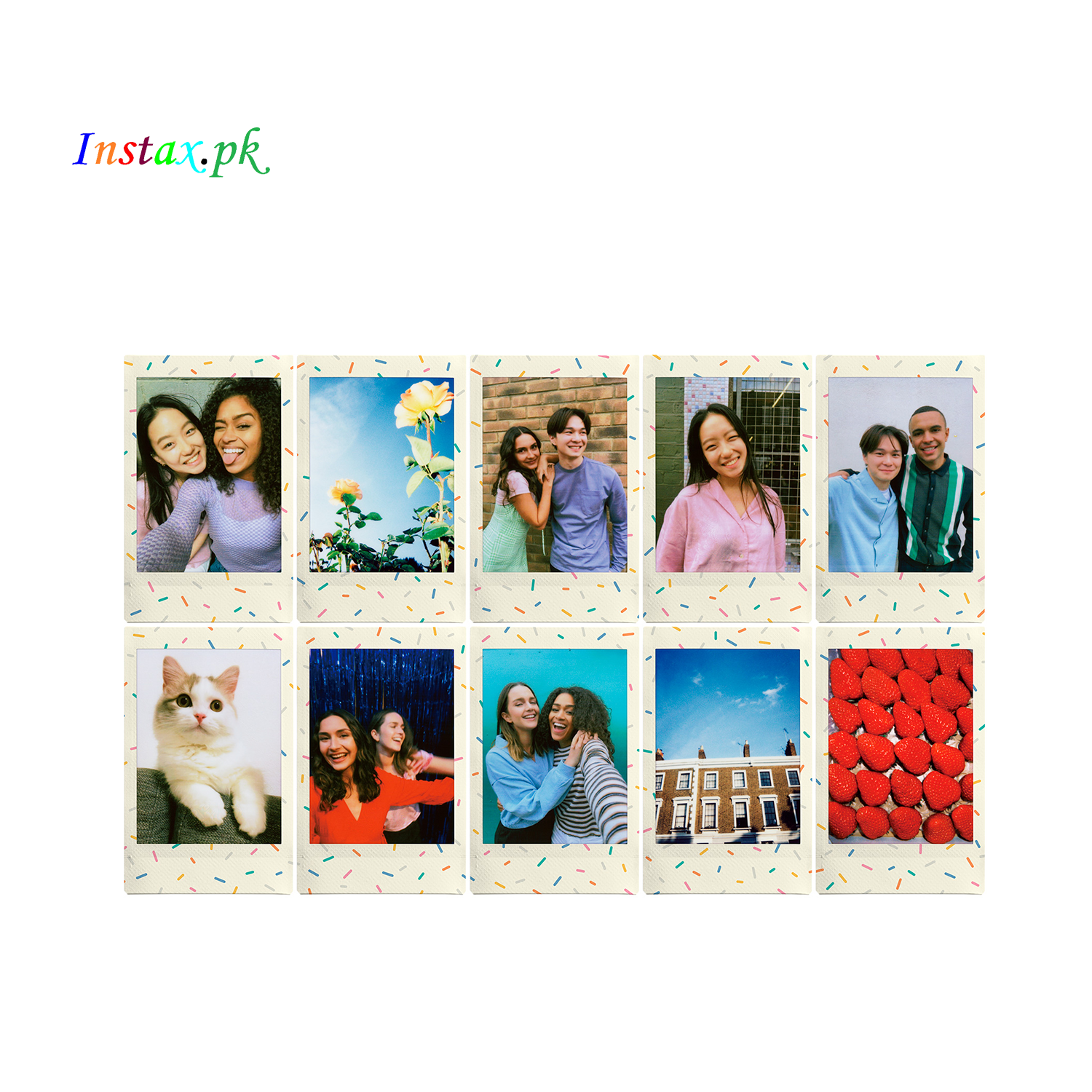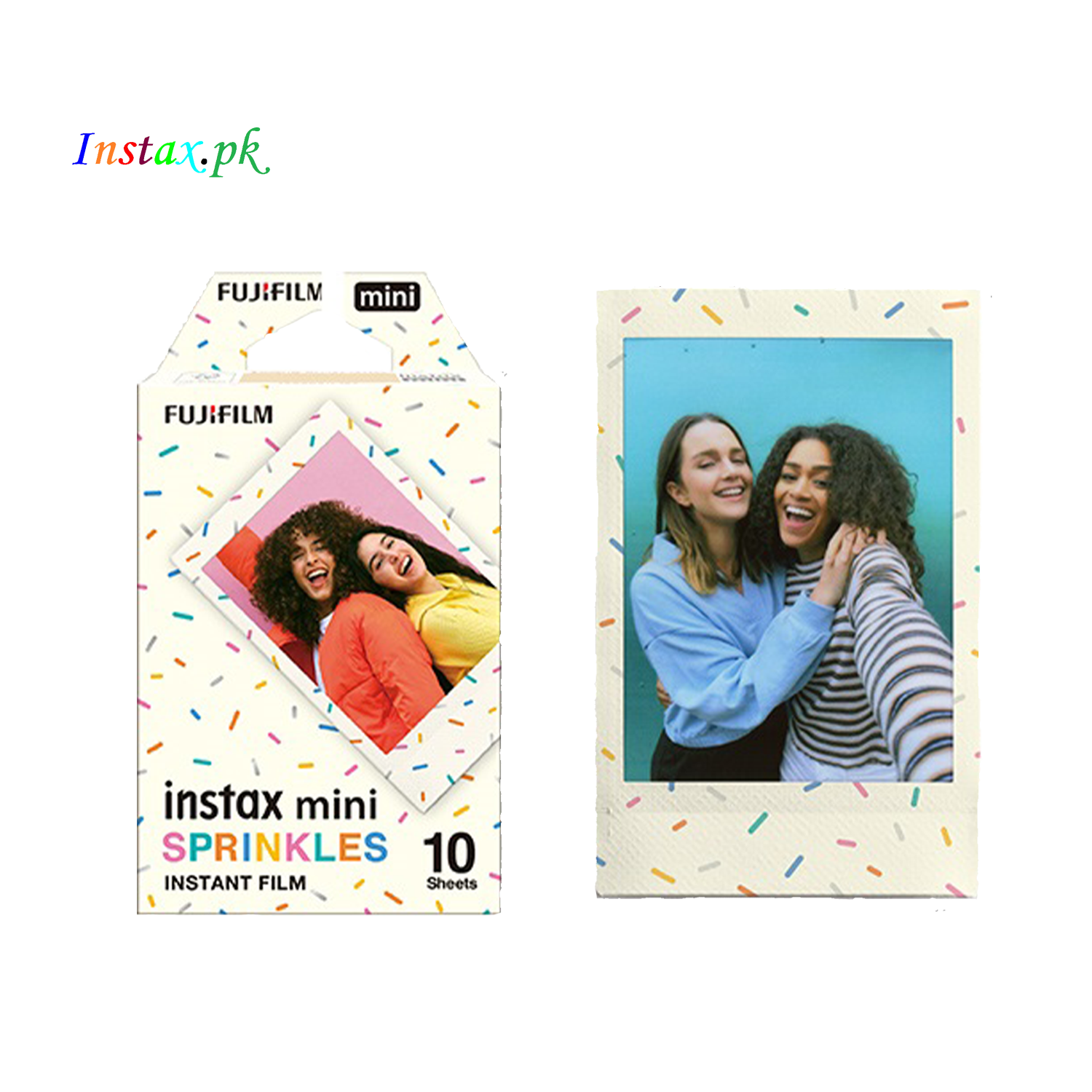 The Instax Mini Sprinkles Instant Film brings a playful and colorful touch to your Fujifilm Instax Mini camera. This delightful film features sprinkles designs, adding a whimsical and celebratory feel to your instant photos.